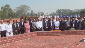 পাশাপাশি মন্ত্রিসভার অন্যান্য সদস্যদের নিয়ে পুষ্পস্তবক অর্পণ করেন এবং শহীদদের সম্মানে কিছুক্ষণ দাঁড়িয়ে থেকে নীরবতা পালন করেন তিনি।