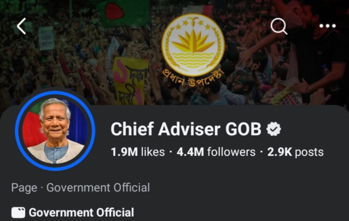 বন্ধ হল প্রধান উপদেষ্টার ফেসবুক পেজ